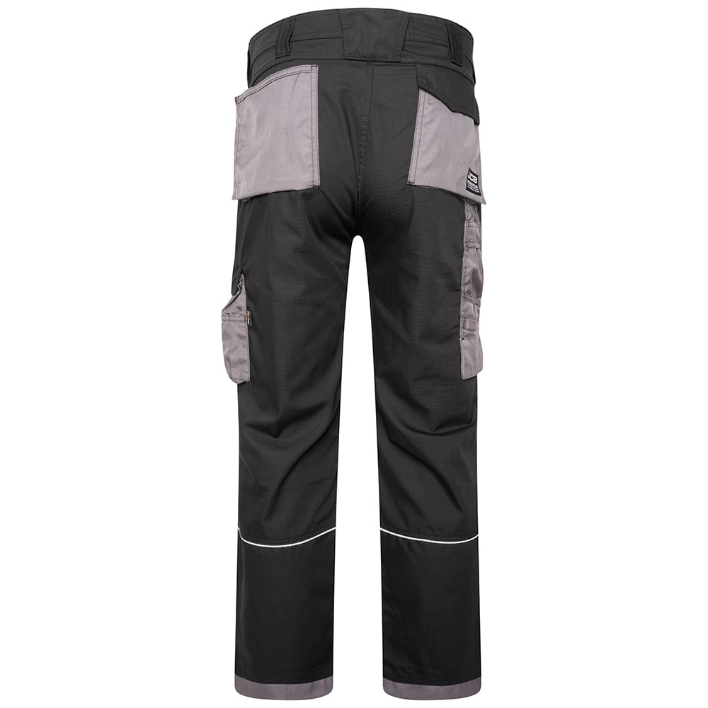 The JCB lightweight trade work trousers have multiple pockets ideal storage for tools and accessories and triple stitched flat felled seams for durability. With top loading CORDURA® fabric knee pad pockets with Velcro® fastening and CORDURA® fabric around the bottom of the hem and a reinforced gusset for added durability.