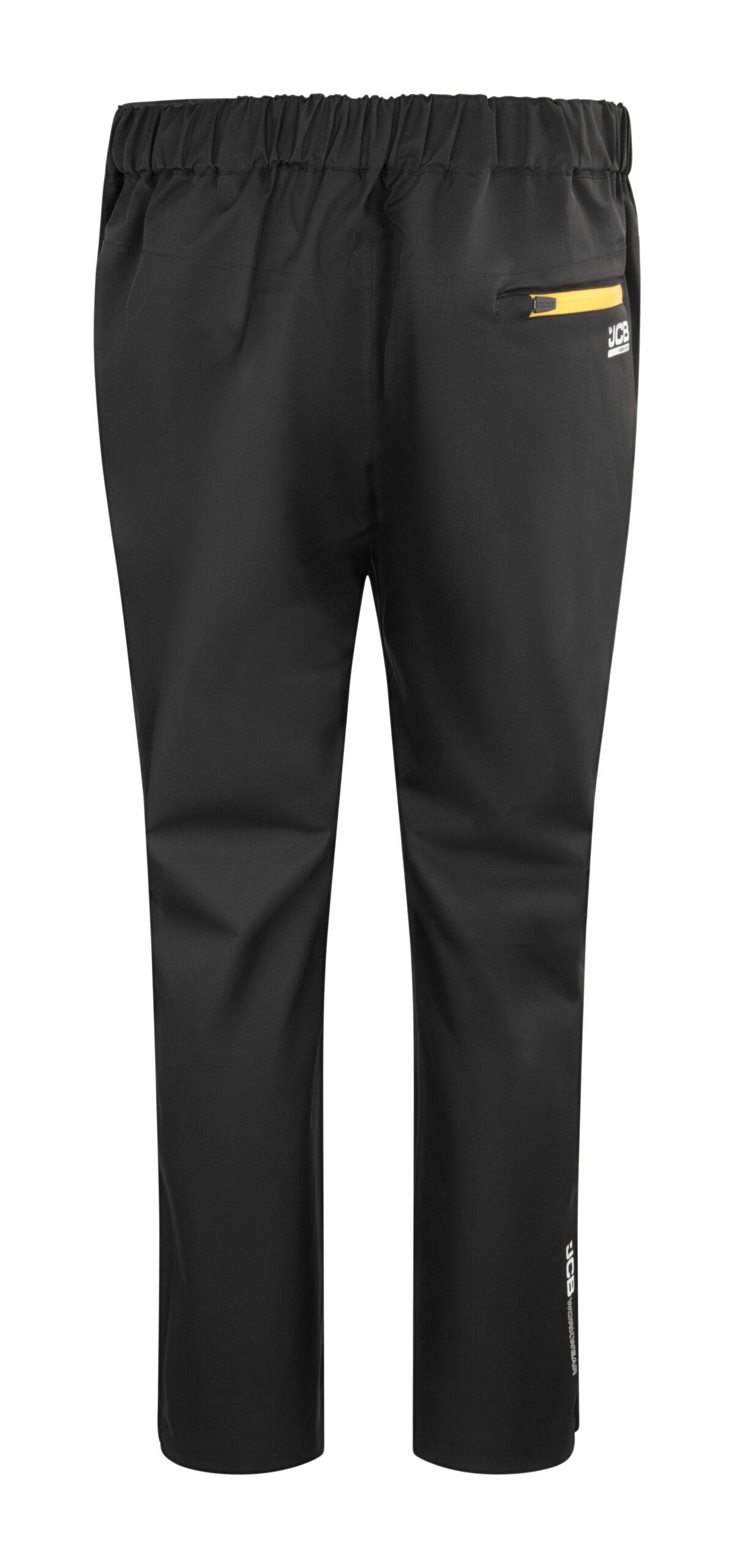 Lightweight 145g 100% polyester fabric with TPU membrane for reliable waterproof protection > Fully waterproof construction with taped seams to keep water out in wet conditions > Waterproof zip access at leg for easy on/off over footwear > Contrast waterproof zips for visibility and a modern workwear look > Unlined design keeps trousers lightweight and easy to layer > Finished with a silicone tab on side seam for subtle JCB branding