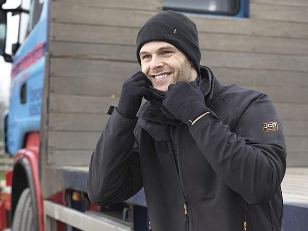 JCB Winter Hat, Work Gloves and Snood Set: Packaged in a branded JCB retail tube